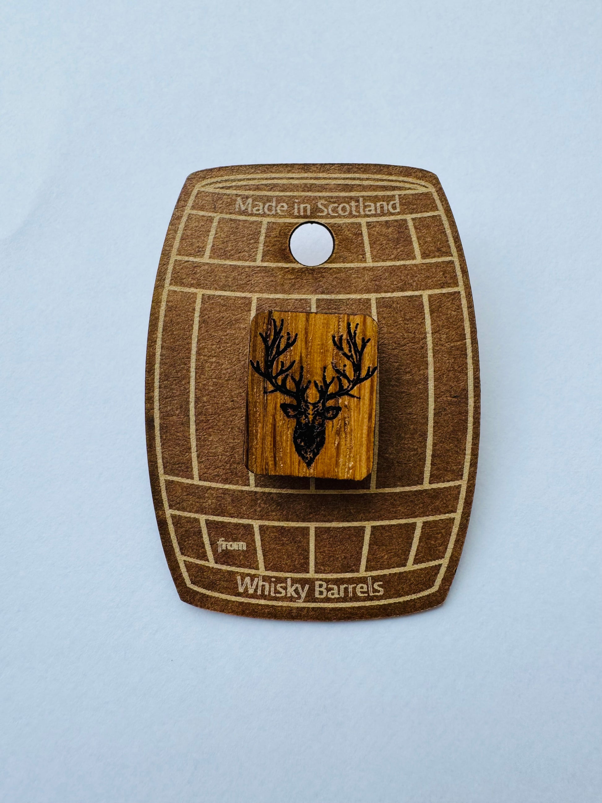 Our Whisky Barrel Pins are truly sustainable. Made from old Whisky Barrels they are authentically Scottish. They are aimed mainly at our wholesale customers, with each design cut to size and engraved with our Scottish designs. They come on hard board that is also engraved, these little gems are proudly Made in Scotland.