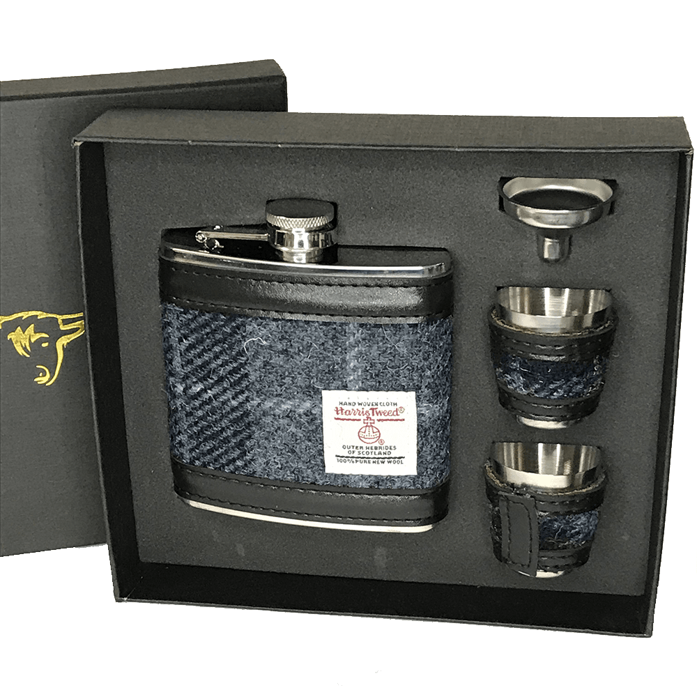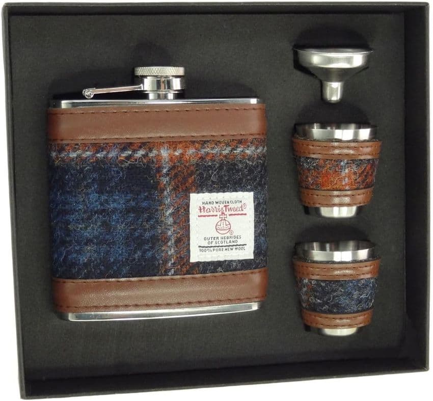 This Glen Appin of Scotland 6oz Harris Tweed Hip Flask Gift Set is wrapped in the finest woven Harris Tweed Tartan, featuring a funnel and 2 cup.
