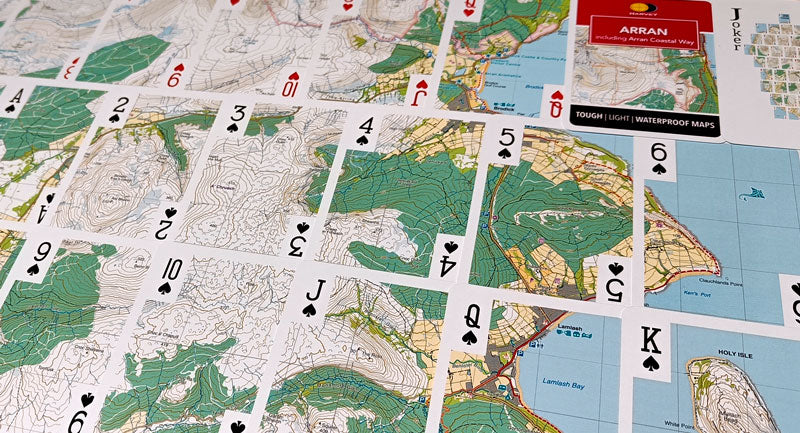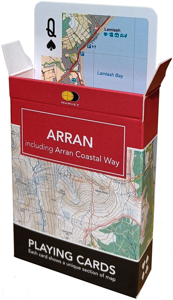 Map of the Isle of Arran on playing cards, including the Arran Coastal Way.