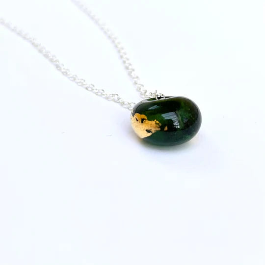 This is a special pendant, an old (empty!) whisky bottle has been melted in a blowtorch and shaped into a beautiful tactile pendant.