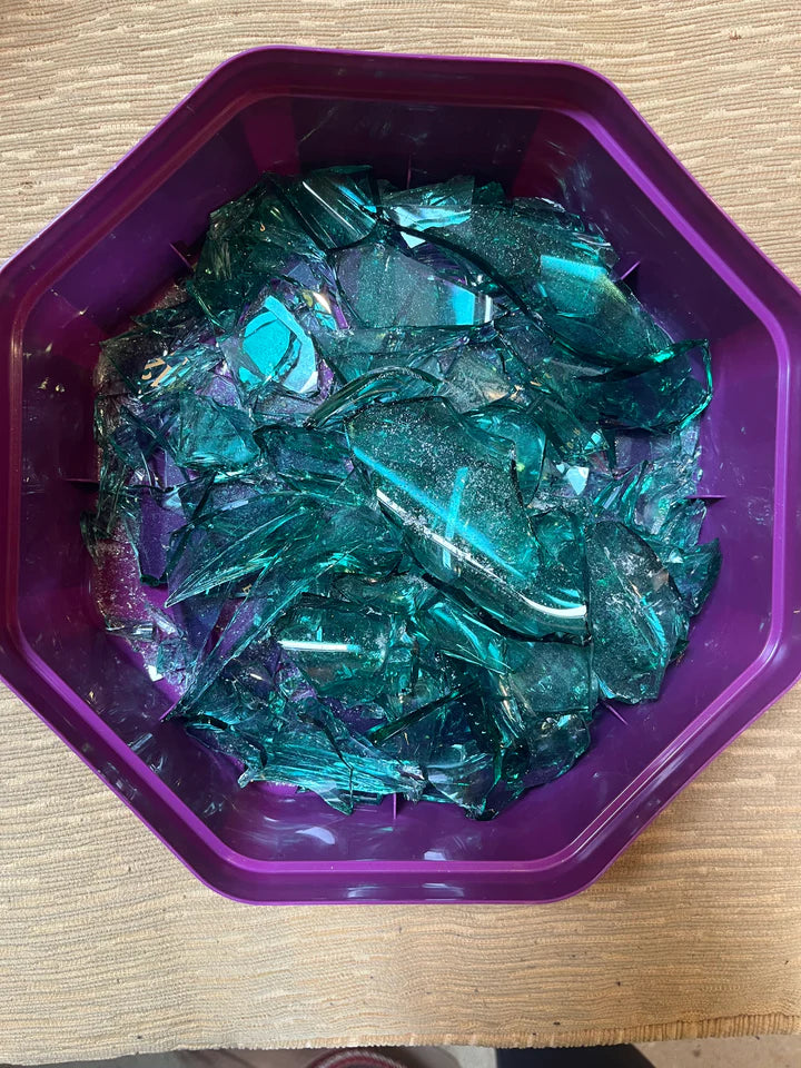 These studs are special, instead of our usual Murano glass base, these used to be a Scottish Whisky Bottle! We break up the bottle and melt the glass down bit by bit adding the hypoallergenic steel backs in the flame as usual. These have a slick of Palladium leaf melted onto them.