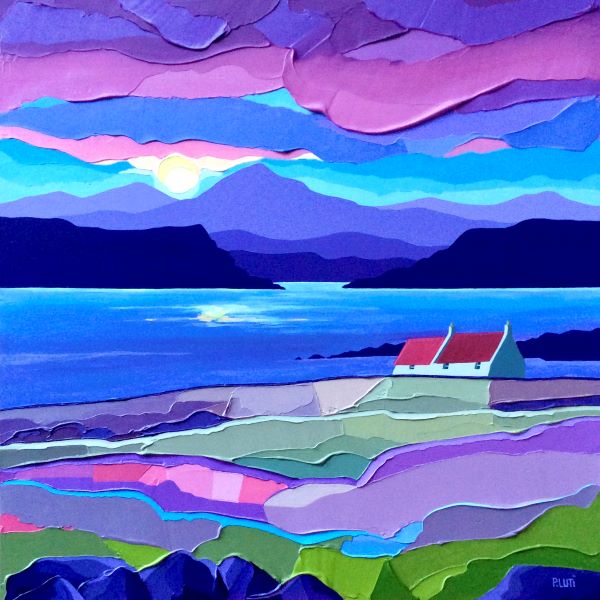 Original painting by Peter Luti. Peter was born and raised in Callander, Perthshire and continues to live there. He studied ceramics at Duncan of Jordanstone College of Art, Dundee and Goldsmiths' College, London. After many years working in Art and Design Education, Peter retired as Head of Expressive Arts, Faculty of Education, Universiry of Glasgow to concentrate on painting, mainly in acrylics, and other interests.