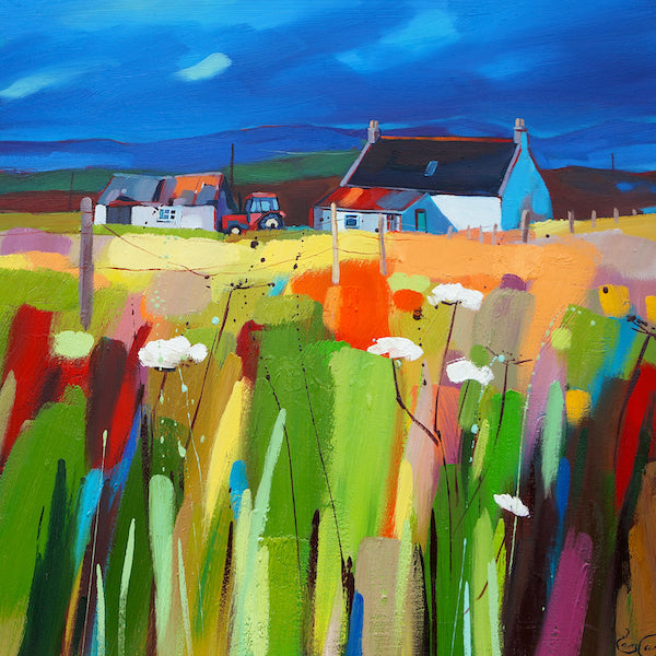 Original painting by Pam Carter. Born in Tanzania to an Austrian mother and Scottish father, Pam Carter studied at Glasgow School of Art and has spent many years lecturing at Falkirk College. She exhibits widely throughout Britain and a number of her works are available in limited edition prints.